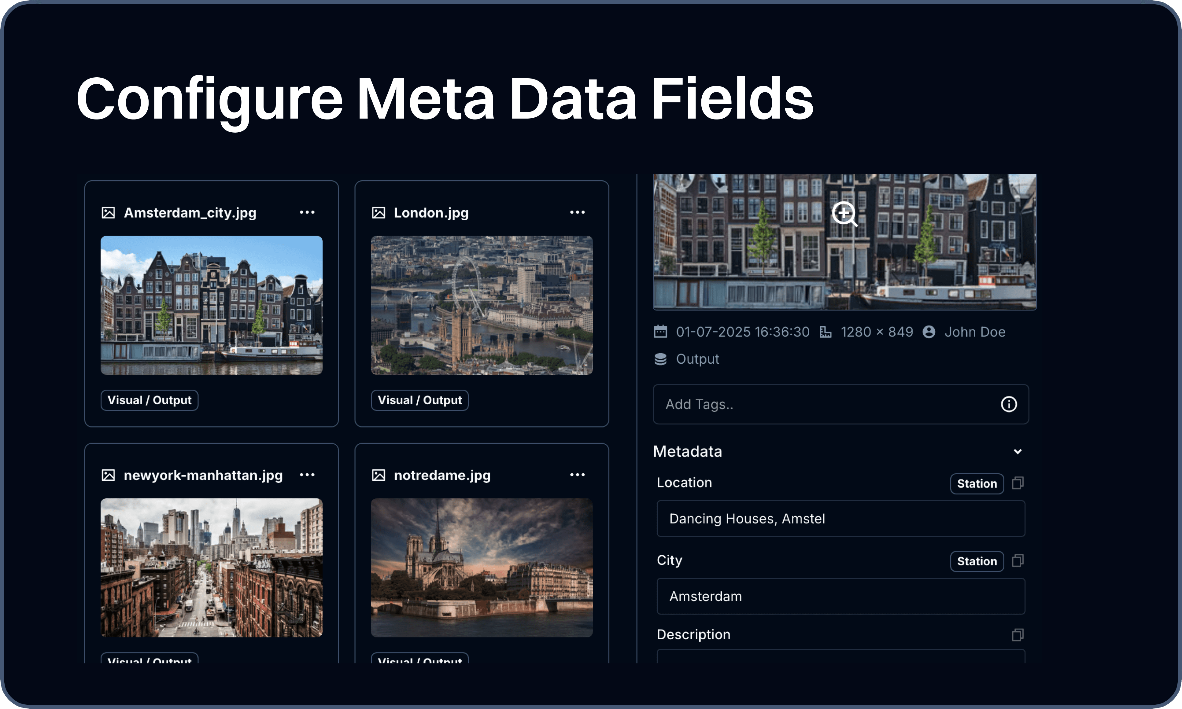 The new metadata functionality enables station managers to define their own custom metadata fields for every media asset in the Visual Radio Cloud platform. Whether you're tagging photos with presenter names, show titles, or copyright info, these metadata tags are accessible and ready to be displayed in your Visuals.