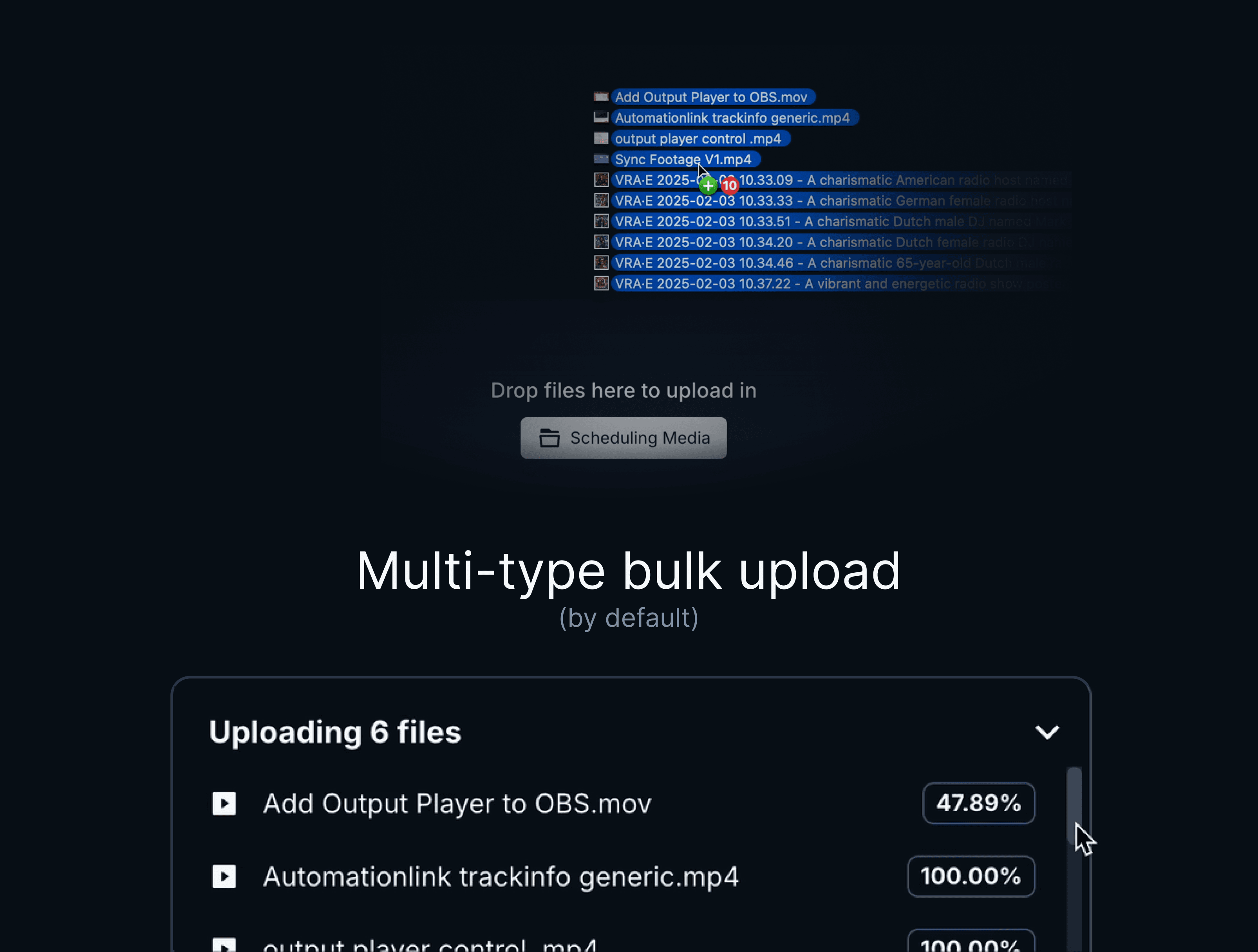 Effortless re-use: Use uploaded media in multiple places, such as Graphics, Video Players, and Scheduling/Show Imagery.